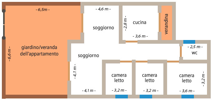 Per garantirvi autonomia e riservatezza, i nostri appartamenti hanno un ingresso autonomo ed una veranda indipendente, particolarmente comoda sia al ritorno dalla spiaggia sia per dei momenti di relax all'aperto. All'interno, gli appartamenti dispongono di varie stanze (con tre camere da letto) e ogni componente della famiglia potrà trovare lo spazio ideale per il suo relax.